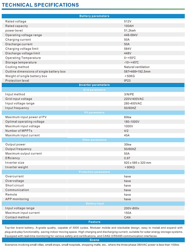 51.2kWh Small industrial and commercial storage system 30kW/51.2kWh
