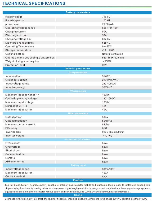 71.68kWh Small industrial and commercial storage system 50kW/71.68kWh